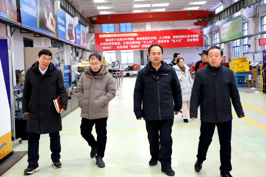座谈会后,在院领导的陪同下,陈德宝一行实地查看了综合实训基地,重点查看了智能化综采实训车间、煤矿安全警示教育体验馆、工匠大师工作室荣誉展厅和淮北矿业直播中心等处。
