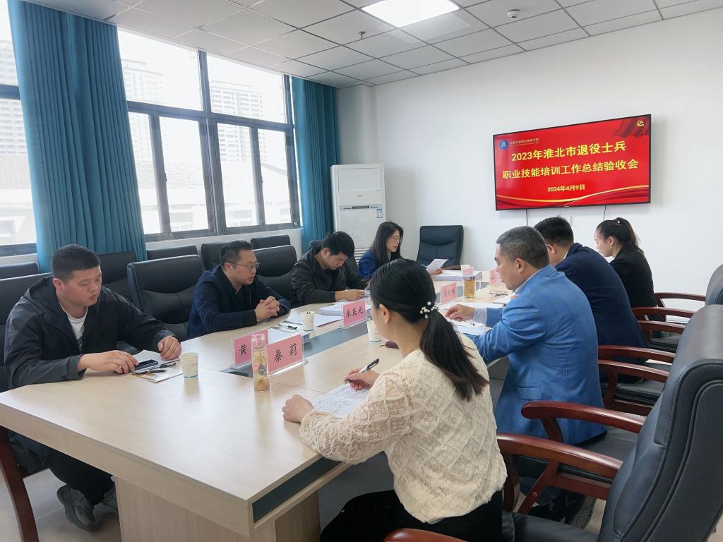 4月9日,淮北市退役军人事务局党组成员、副局长、二级调研员朱良光带领相关部门负责人和专家来我院,对2023年度全市退役军人培训工作进行验收。学院副院长赵铁塔、淮硕教育执行董事马向伟参加总结验收会。