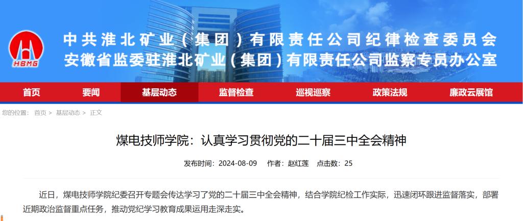 近日,煤电技师学院纪委召开专题会传达学习了党的二十届三中全会精神,结合学院纪检工作实际,迅速闭环跟进监督落实,部署近期政治监督重点任务,推动党纪学习教育成果运用走深走实。