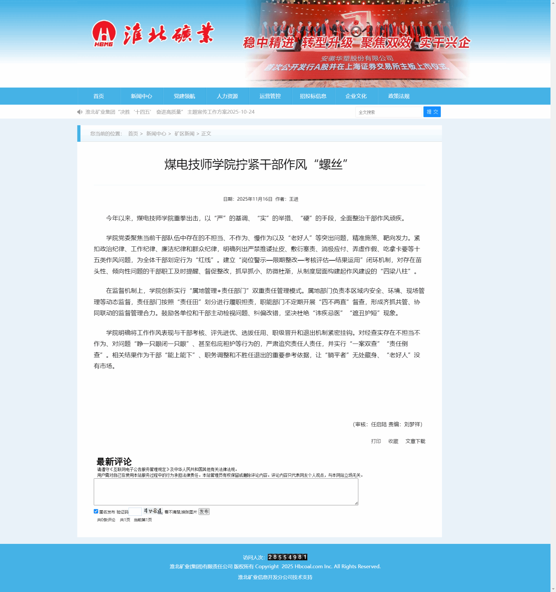 今年以来,煤电技师学院重拳出击,以“严”的基调、“实”的举措、“硬”的手段,全面整治干部作风顽疾。