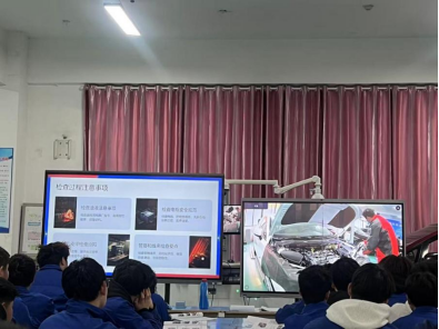 观摩课上,陈玉宝老师打破传统理论讲授的单一模式,采用拍摄汽车发动机实时接入屏幕的教学方式,将发动机舱内油液、蓄电池、皮带、管路和线束的检查画面同步投射至大屏幕,这种“边讲解、边示范、边指导”的互动教学,为学生搭建了“近距离”观察实操的窗口,有效提升了技能传授的精准度,为后续推进同类课程改革提供了宝贵参考。