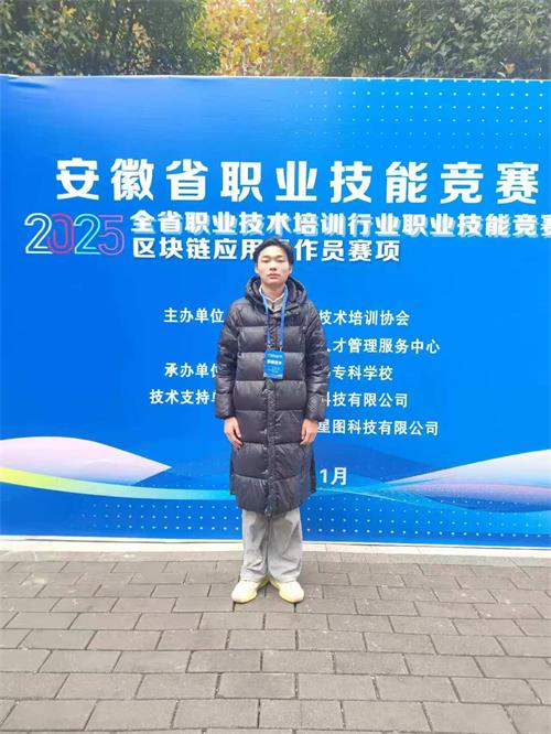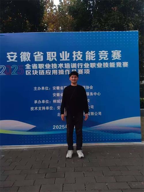 近日,2025年全省职业技术培训行业职业技能竞赛区块链应用操作员赛项在桐城师范高等专科学校圆满落幕。本次大赛吸引了全省共90组选手同台竞技,我院学子不负众望,在赛场上绽放锋芒,纵驰、赵昶两位选手在指导教师苏鑫、许可的悉心指导下,分别斩获二等奖与三等奖各一项,充分展现了我院在新兴数字技术领域高素质技能型人才培养的显著成效。