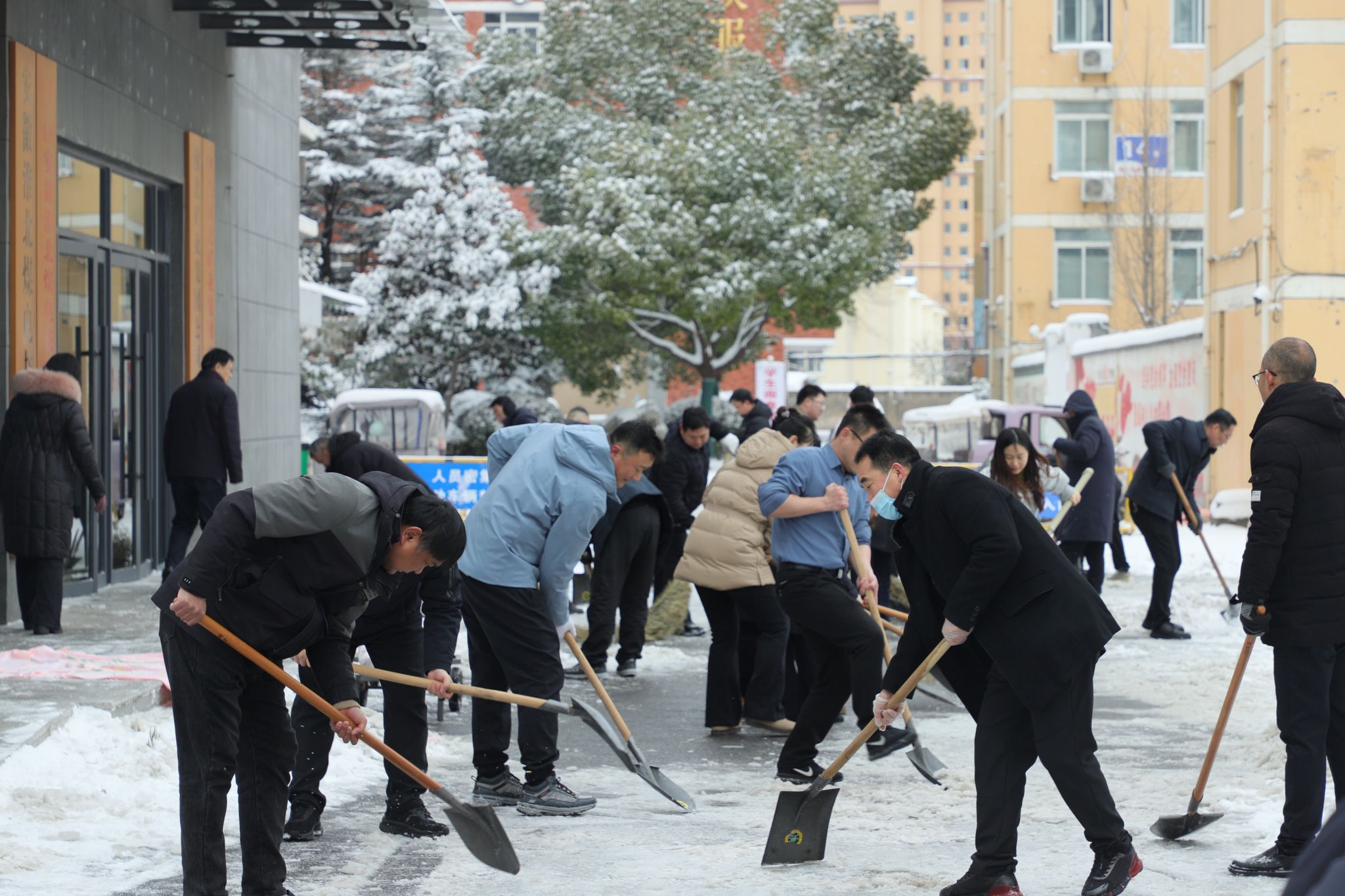 “雪下得急,路面容易结冰,得赶在培训学员下课之前把主干道清出来!”1月20日上午,校园里涌动着一股滚烫的暖流。面对骤降的雪情,学院党委迅速吹响“党员我先行,除雪保畅通”集结号,各党支部党员闻令而动、挺身而出,在皑皑白雪中筑起了一道“红色防线”。