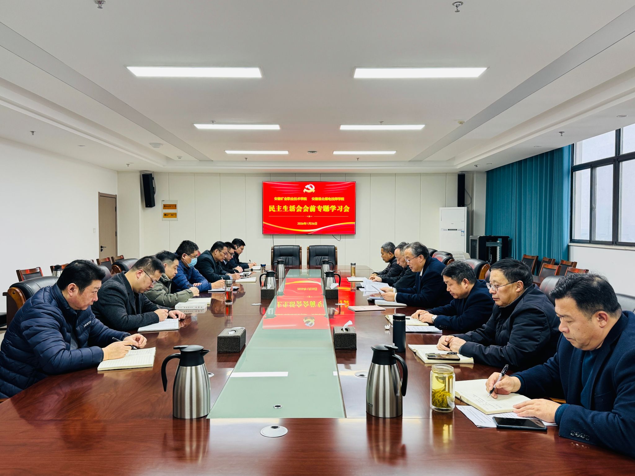 1月26日,学院党委书记、董事长侯荣巧主持召开学院党委理论学习中心组2026年第2次学习会议暨民主生活会会前学习会。会议传达学习了习近平总书记在中共中央政治局民主生活会上的重要讲话精神、习近平总书记对中央企业工作的重要指示以及2026年全国教育工作会议精神。会上,班子成员围绕《聚焦“五个带头” 涵养清风正气 以优良作风凝聚实干担当新作为》主题开展集中研讨,并集体观看了视频《习近平在二十届中央纪委五次全会上发表重要讲话》。