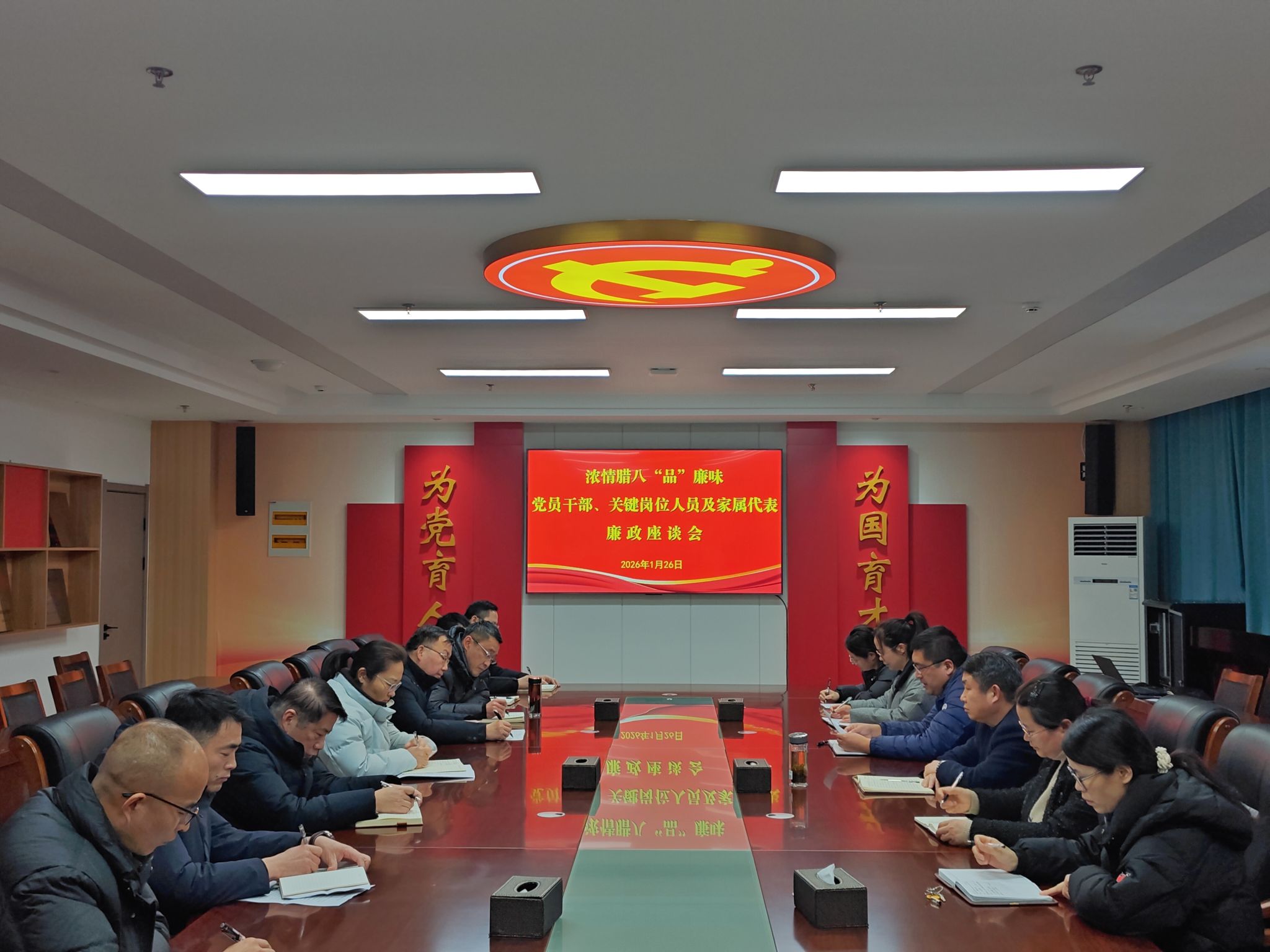 为深入贯彻落实全面从严治党要求,进一步增强党员干部、关键岗位人员的廉洁自律意识和履职担当能力,筑牢拒腐防变思想道德防线,1月26日下午,淮北煤电技师学院召开浓情腊八品“廉”味党员干部、关键岗位人员及家属代表廉政座谈会。