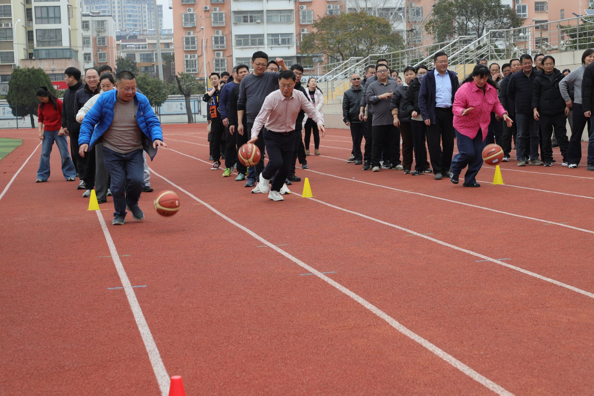 本次活动的两个项目——“‘篮’不住的风采”接力运球折返跑与“龙马精神”旱地龙舟——在运动场的东西两侧同时开赛,现场瞬间被分成两大“战区”,气氛热烈非凡。