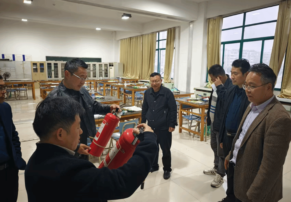 开展实战化消防演练。在实训基地组织开展了消防应急疏散演练和灭火实操演练。演练前,对疏散路线、集合地点、安全注意事项等进行了详细说明;演练中,模拟实训车间因电气短路引发火灾,现场烟雾弥漫,警报声响起后,在党员教师的引导下,师生们用湿毛巾捂住口鼻,弯腰低姿,按照预定路线快速、有序地疏散至安全区域,整个疏散过程快速有序,做到无遗漏、无受伤。疏散结束后,消防联络员现场示范了灭火器“提、拔、握、压”的使用步骤,党员教师带头,师生们逐一上前进行灭火实操,亲身体验扑灭初期火灾的过程,进一步提升了应急处置能力。