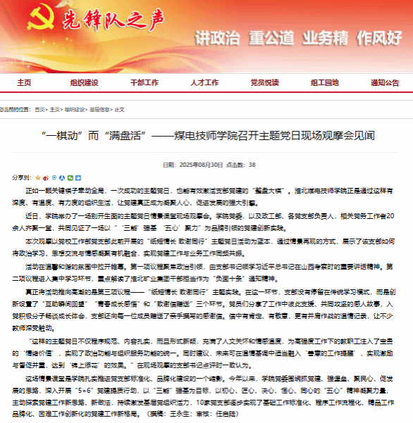 正如一颗关键棋子牵动全局,一次成功的主题党日,也能有效激活支部党建的“整盘大棋”。淮北煤电技师学院正是通过这样有深度、有温度、有力度的组织生活,让党建真正成为凝聚人心、促进发展的强大引擎。