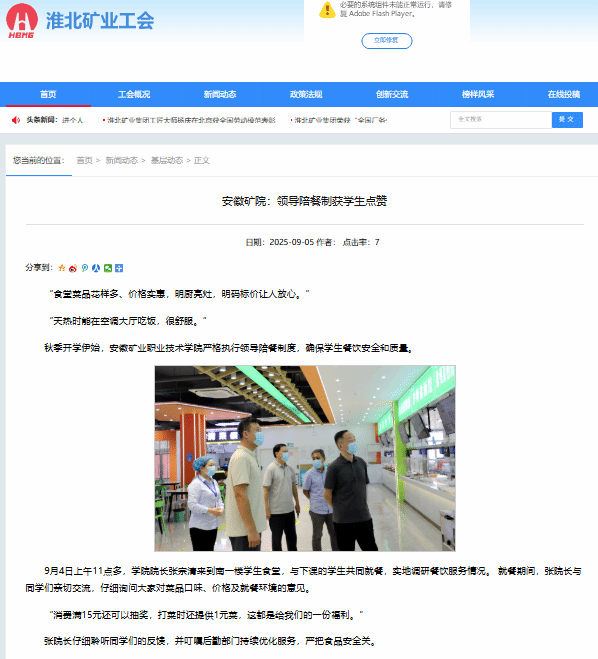 秋季开学伊始,安徽矿业职业技术学院严格执行领导陪餐制度,确保学生餐饮安全和质量。