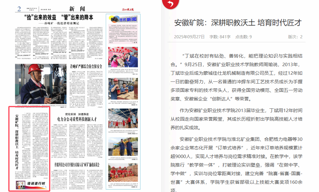 “长期专注于一事,学习、思考、实践,才能取得成功。”该学院工匠大师工作室核心成员杨杰说,学院与安徽淮北煤电技师学院是一个机构、两块牌子,创办以来坚持“服务矿区、立足淮北、面向社会”的定位,紧跟煤炭行业和区域产业升级趋势,动态优化专业结构,累计培养3万余名技能人才,其中涌现出多位全国劳模、全国五一劳动奖章获得者。