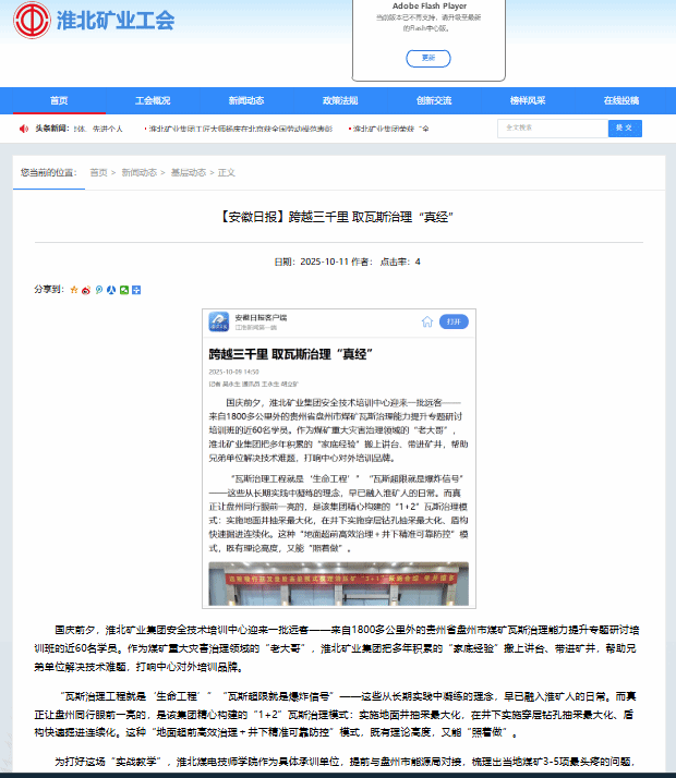 国庆前夕,淮北矿业集团安全技术培训中心迎来一批远客——来自1800多公里外的贵州省盘州市煤矿瓦斯治理能力提升专题研讨培训班的近60名学员。作为煤矿重大灾害治理领域的“老大哥”,淮北矿业集团把多年积累的“家底经验”搬上讲台、带进矿井,帮助兄弟单位解决技术难题,打响中心对外培训品牌。