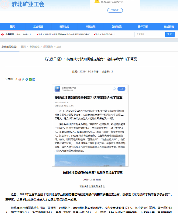 近日,2025年全省职业技术培训行业职业技能竞赛区块链应用操作员赛项决赛结果公布,安徽淮北煤电技师学院两名学子分获二、三等奖。这是学院在培养技能人才道路上取得的又一成果。
