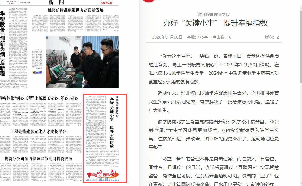 近两年来,淮北煤电技师学院聚焦师生需求,全力推进教育民生实事项目落地见效,有效解决了一批急难愁盼问题,温暖了广大师生。