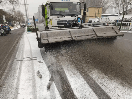 “我们不间断地在立交桥、陡坡等湿滑路段扫雪、融雪。”淮北市同盈环境卫生管理有限公司总经理李登记说,在淮北市环卫部门组织下,同盈环境共投入25台除雪车,对市区主次干道及学校、医院等周边重点区域开展除雪作业,累计抛撒融雪剂400多吨,2300余名环卫工人同步上路,使用铁锹、扫帚等工具,清理积雪与薄冰。