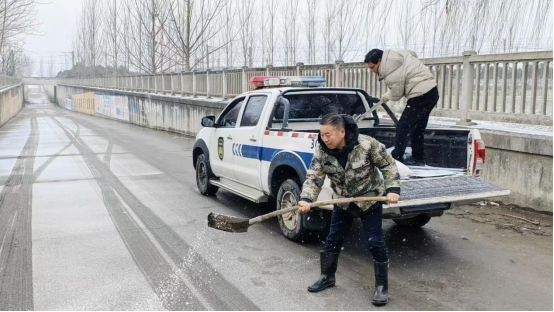“道路通,民心安。”降雪伊始,淮北市杜集区朔里镇便第一时间召开应急部署会,明确分工、压实责任,组织镇村干部、应急队员、志愿者组成多支保障队伍,在辖区主次干道、乡村小路、陡坡弯道等关键路段开展作业。工作人员手持铁锹、扫帚等工具,顶着寒风对积雪进行清扫,同时调配车辆,对结冰路段均匀撒布融雪剂,加速冰雪融化,全力打通群众出行“安全通道”。