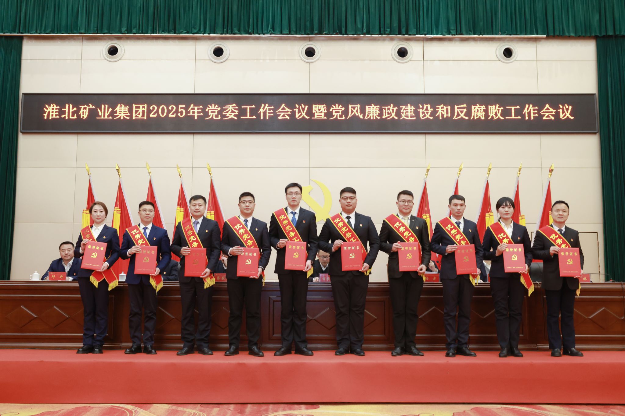 淮北矿业集团始终坚持党旗所指就是行之所向,深入学习贯彻党的二十届四中全会精神和习近平总书记考察安徽重要讲话精神,坚定不移推进全面从严治党,大力实施“5+6”党建提质行动,让高质量党建成为引领企业高质量发展的“红色引擎”。集团在全省学习贯彻《全国党政领导班子建设规划纲要(2024—2028年)》及国企党建创新实践交流会、全国煤炭企业新闻宣传会议、省属企业宣传思想文化工作会议上作交流。集团领导班子先后9年在省委综合考核中获评“优秀”,党委选人用人满意度居省属企业前列;纪委在省纪委监委考核中连续6年获评“优秀”。