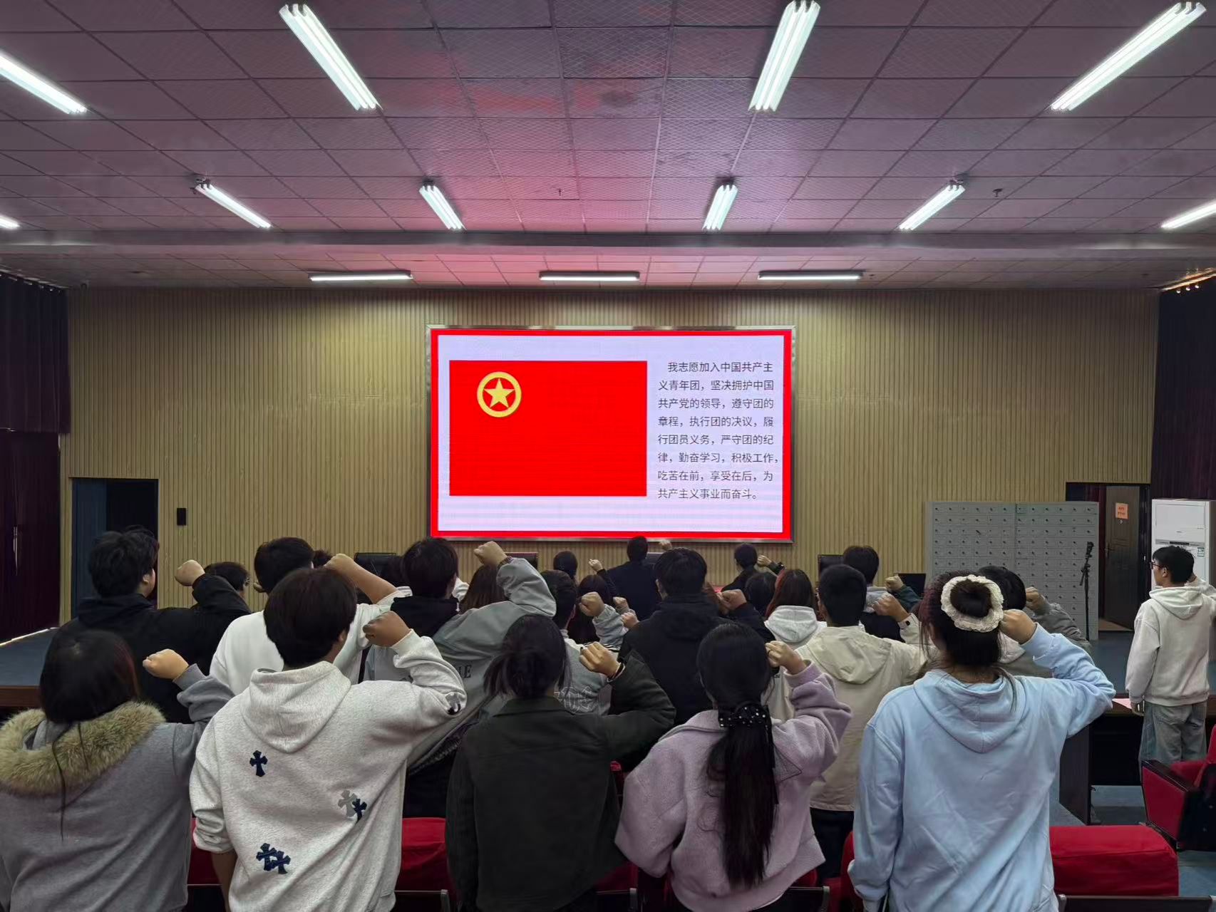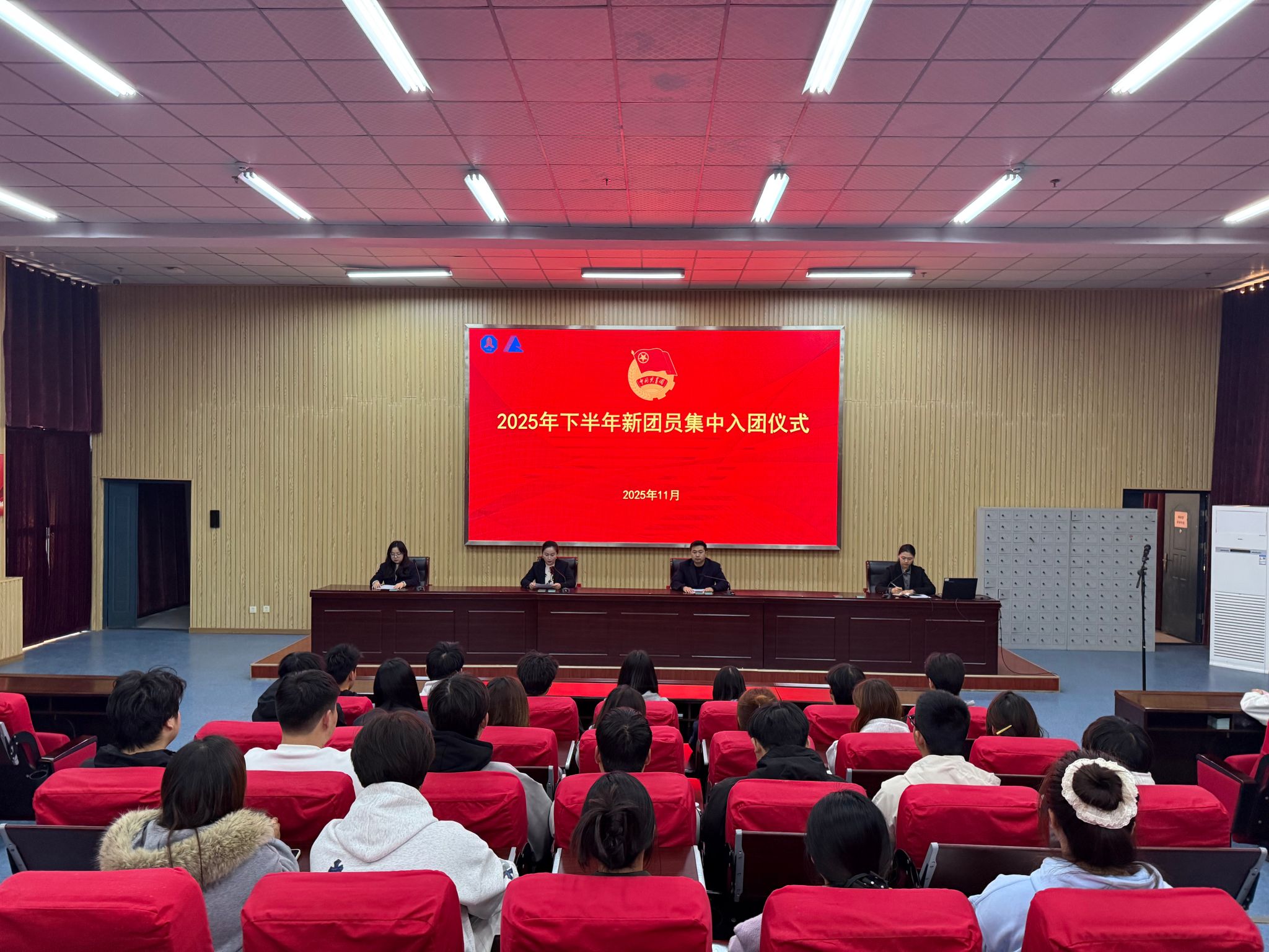 为加强团员思想政治引领,增强团组织的凝聚力和战斗力,学院团委在报告厅举行了2025年下半年新团员集中入团仪式。学院团委书记、各系团总支书记与30名新团员共同见证这一庄严时刻。