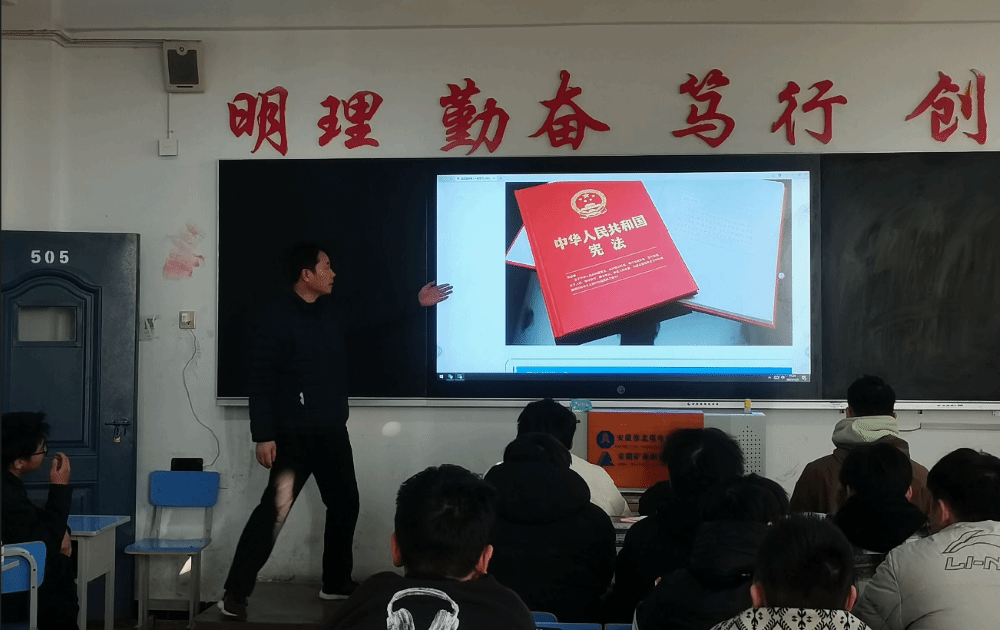 组织教职工集中学习《中华人民共和国宪法》核心条款,解读宪法修订的重大意义与时代内涵,弘扬宪法精神,树牢“学宪、知宪、守宪、用宪”理念,并结合机电工程专业教育教学实际,探讨如何将法治教育融入课程思政,培养具备法治素养的高素质技术技能人才。党员教师们结合自身教学经验分享感悟,纷纷表示要以宪法为根本遵循,在教书育人过程中传递法治理念。