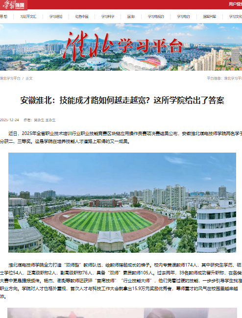 近日,2025年全省职业技术培训行业职业技能竞赛区块链应用操作员赛项决赛结果公布,安徽淮北煤电技师学院两名学子分获二、三等奖。这是学院在培养技能人才道路上取得的又一成果。