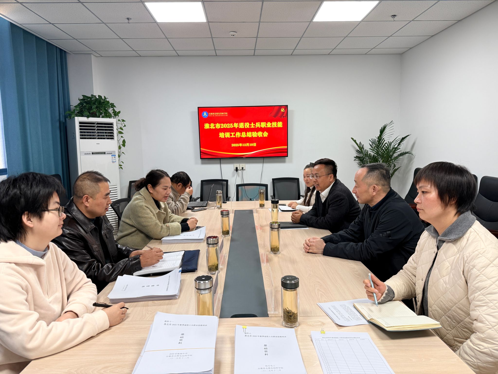 2025年12月10日上午,淮北市退役军人事务局来我院组织开展2025年度退役士兵职业技能培训评估验收工作。市退役军人事务局服务中心主任孟兰英带队,市局相关部门负责人及专家组成评审小组,重点核查培训质量、任务落实及学员就业成效;淮北煤电技师学院院长张宗清,以及淮硕教育相关负责人员参加评审验收会。
