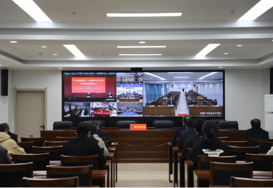 11月11日上午,学院组织收听收看党的二十届四中全会精神省委宣讲团宣讲报告会实时直播。省委宣讲团成员,省委教育工委书记、省教育厅厅长钱桂仑作党的二十届四中全会精神宣讲报告。我院在新综合实训楼11楼会议室设视频分会场,学院领导,相关部门负责人,专职思政课教师、辅导员代表、学生代表近20人认真聆听了宣讲大会。