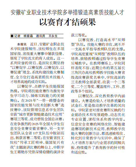 【淮北日报】安徽矿业职业技术学院多举措锻造高素质技能人才 以赛育才结硕果