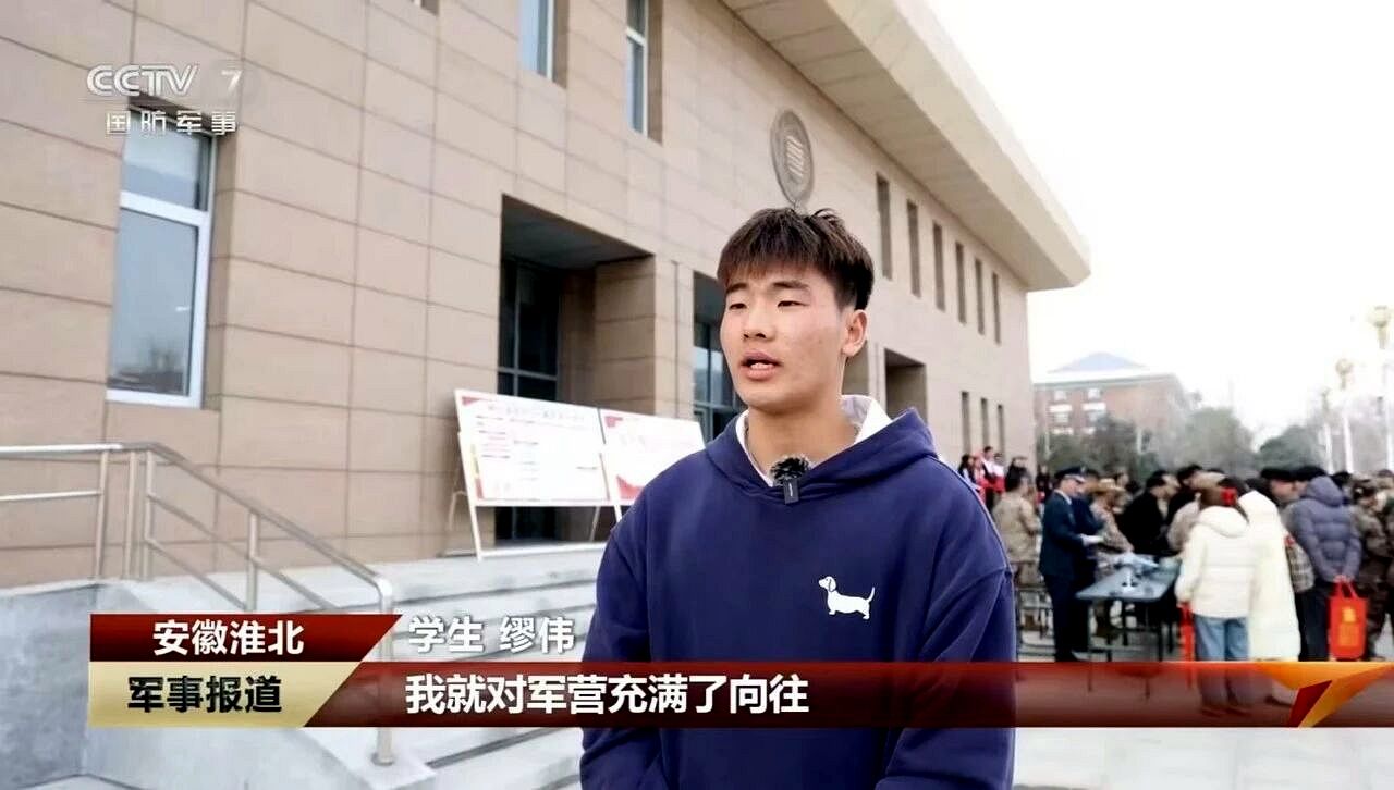 “从小就向往军营,如今渴望用热血铸就忠诚!”安徽矿业职业技术学院新能源汽车技术专业2023-1班学生缪伟接受CCTV7国防军事频道记者采访时的发言,道出了许多同龄人的心声。