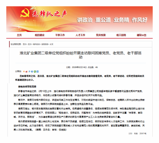 新春佳节来临之际,2月10日上午,淮北煤电技师学院党委书记侯荣巧专程到家中看望慰问全国优秀共产党员、淮北矿业集团首席技师杨杰,向他致以诚挚问候和新春祝福,并送去组织的关怀与慰问品。