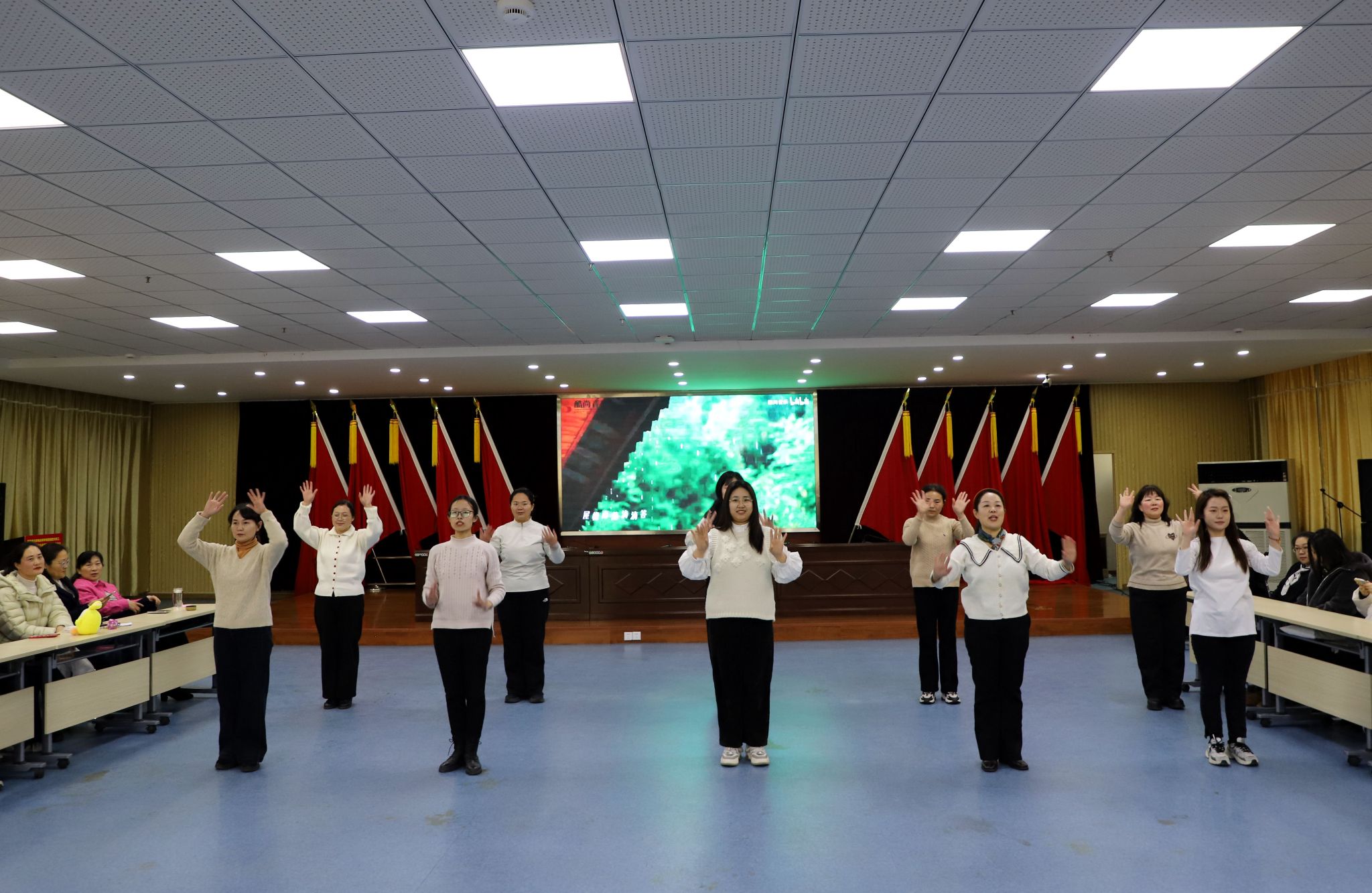 随后的节目更是精彩纷呈,多维度展现着女性风采。党校教师带来的《童年记忆》唤起大家对往昔时光的怀念。综合组表演的舞蹈串烧《谁家大美人》和创意配音,赢得阵阵喝彩。公共课部全体女职工带来手势舞《大笑江湖》,动作整齐有力,柔韧中带着干练。学工部、招生就业处等部门联合表演的歌舞《立春》,为文艺演出画上圆满句号。