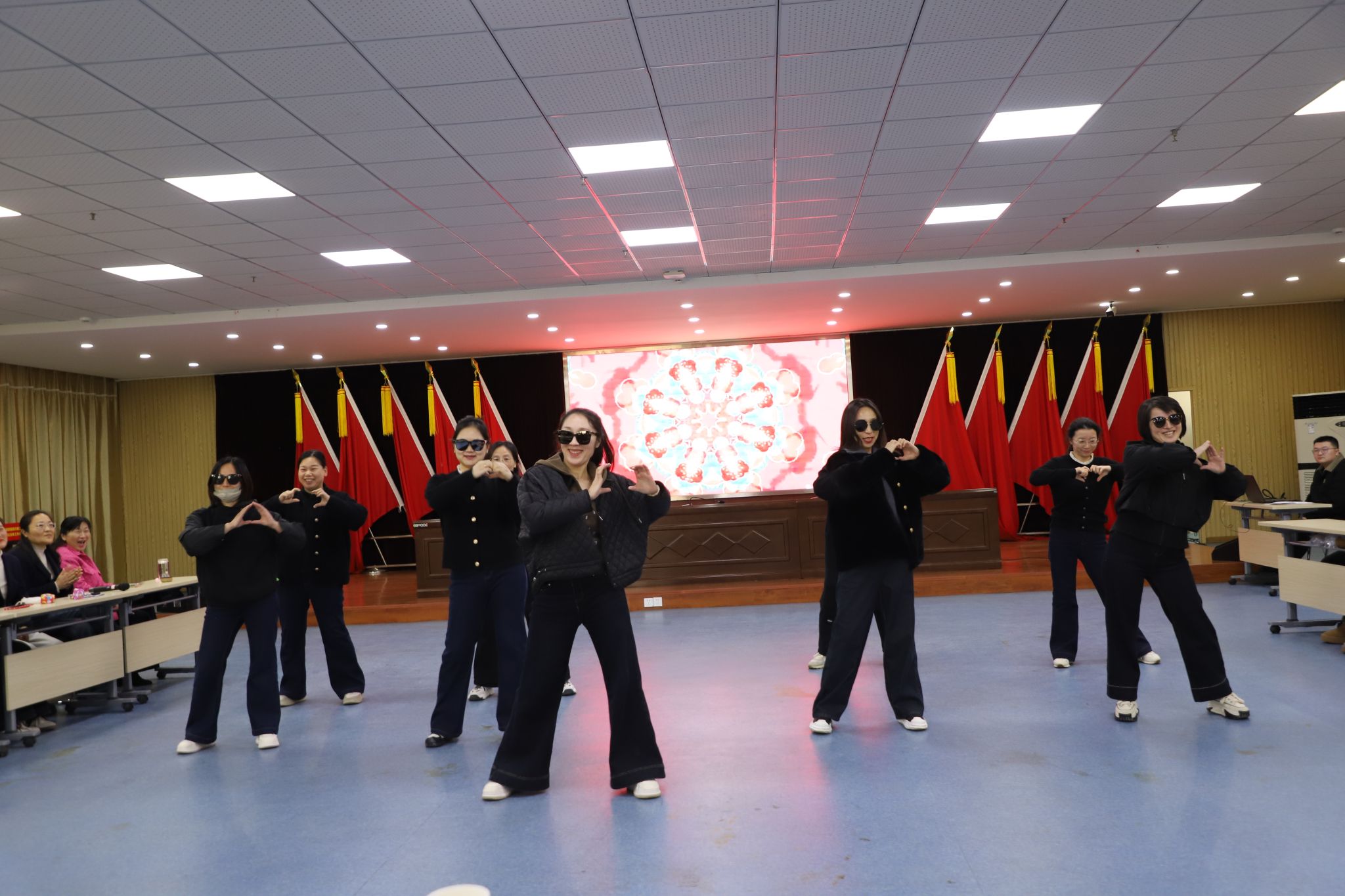 管理信息系全体女职工带来的“开心走秀”,没有华丽的礼服,她们穿着日常的工作装,却走出了职场女性特有的从容与自信。她们用实际行动告诉大家:讲台上的严谨是美,生活中的干练也是美,每一种模样,都值得被欣赏,被赞美。