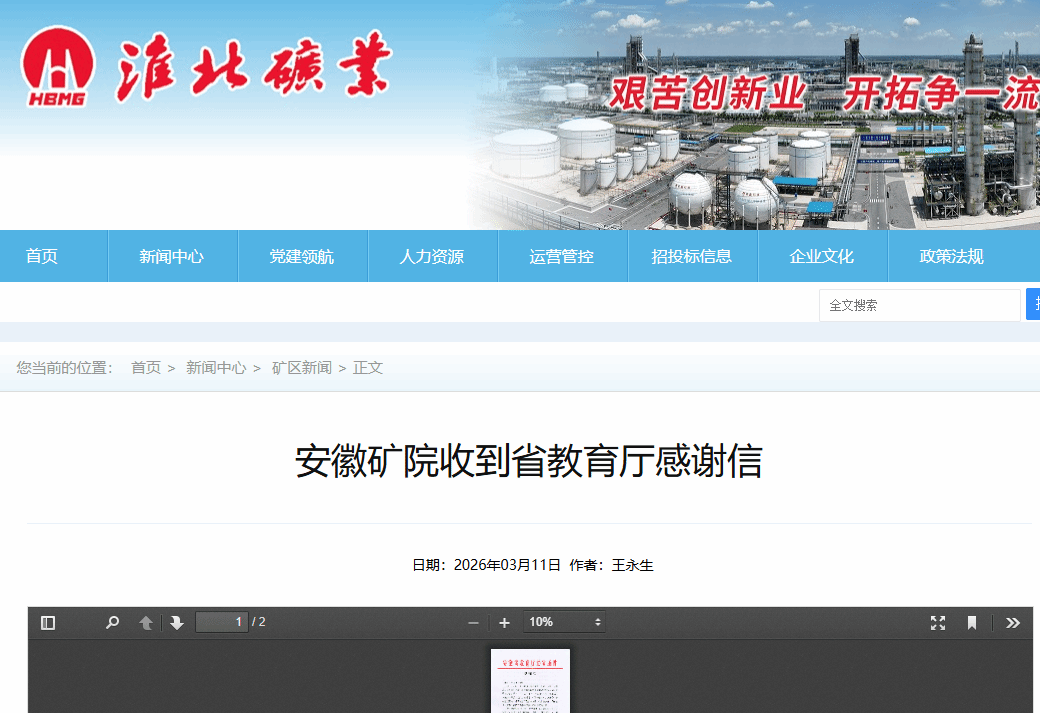 近日,安徽矿业职业技术学院收到省教育厅办公室和省教育信息咨询中心联合发来的感谢信。