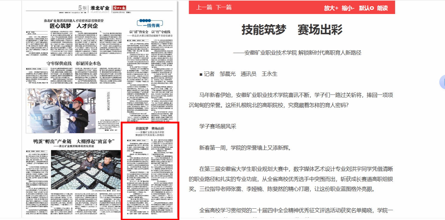 从职业规划到技能比拼,从课堂学习到赛场实战,安徽矿业职业技术学院的学子们正在用一个个奖杯、一张张奖状,书写着新时代技能人才的青春答卷,学院正朝着“产教更紧、匹配更准、服务更暖、技能更高”的方向阔步前行。