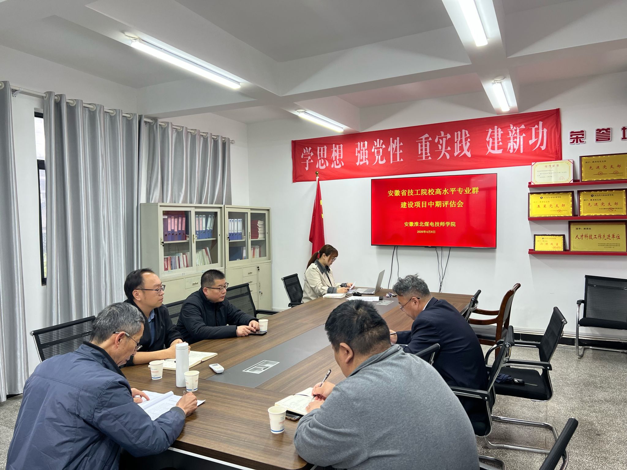 为迎接安徽省技工院校高水平专业群建设项目中期评估,全面检验“双高计划”建设成效,2026年4月8日,教务处在1号综合楼三楼会议室召开了安徽省高水平专业群建设项目中期评估会。