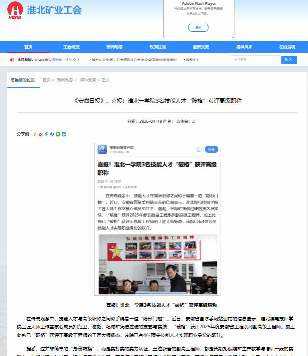 近日,安徽省国资委网站发布信息,淮北煤电技师学院工匠大师工作室核心成员扣红卫、谢彪、纪海矿凭借精湛技艺与突出业绩,“破格”获评2025年度安徽省工程系列副高级职称。此前,该院工匠大师杨杰以同样方式获评正高级工程师。至此,该院已有四位顶尖技能人才实现职业发展的重要跨越。