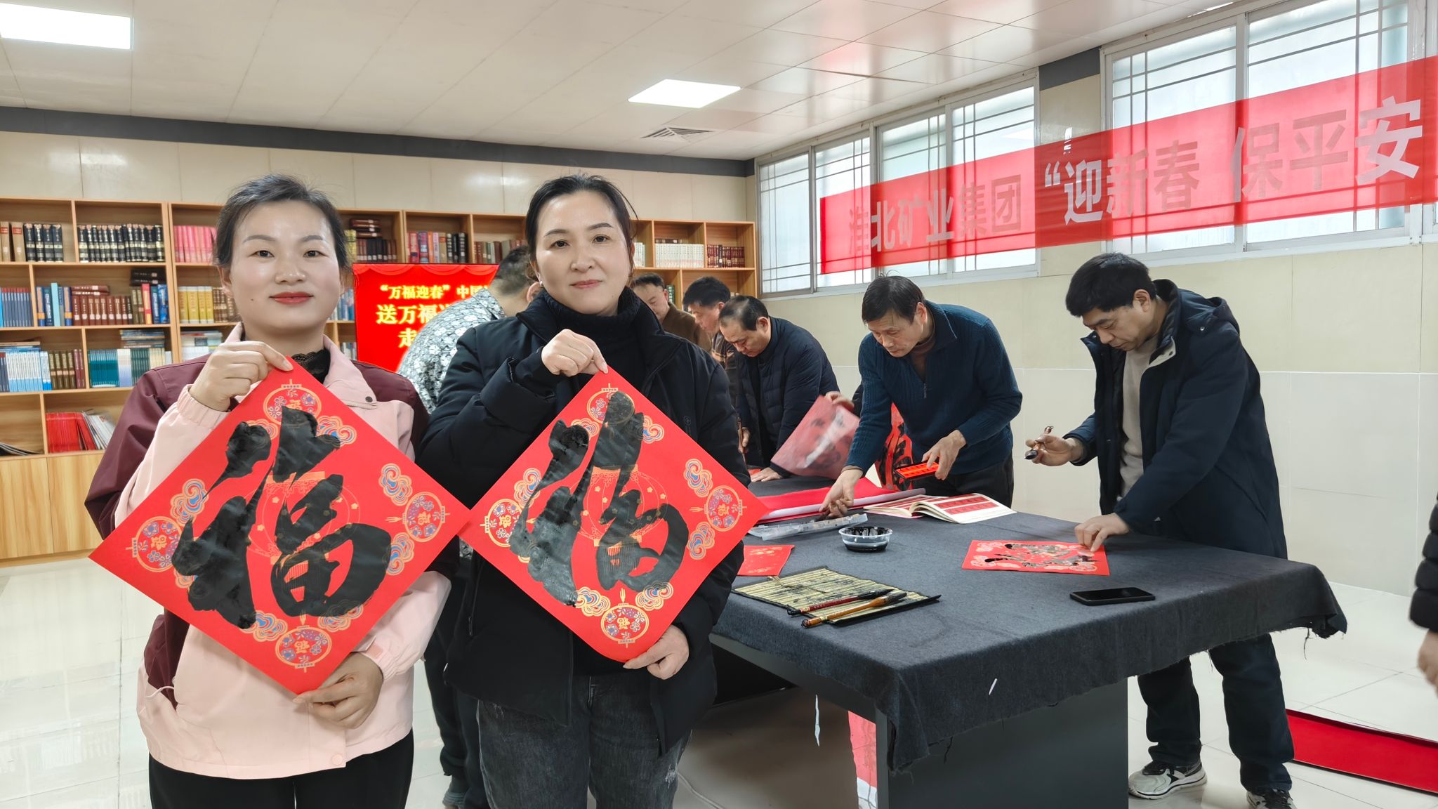 闻讯而来的职工络绎不绝,或驻足观赏,或排队等候,拿到春联的职工喜笑颜开,小心翼翼铺平晾干。"手写的春联更有年味,挂在家里更有意义!"刚升井的矿工师傅接过福字,眉眼间的疲惫被温暖与喜悦尽数驱散。“这副平安春联写得太合心意了,新的一年,我们一定守好安全底线,干好本职工作!”朴实的话语里,满是职工们的喜悦与感动,大家纷纷为此次活动点赞,现场处处洋溢着温馨和谐的新春氛围。