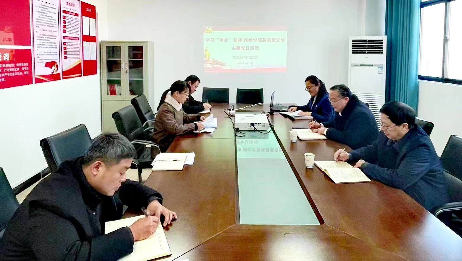 1月12日上午,党校工作部党支部开展“学习‘两会’精神,推动学院高质量发展”主题党日活动。学院党委书记、董事长侯荣巧,集团党校教育长、学院工会主席冯亚以普通党员身份参加了活动。