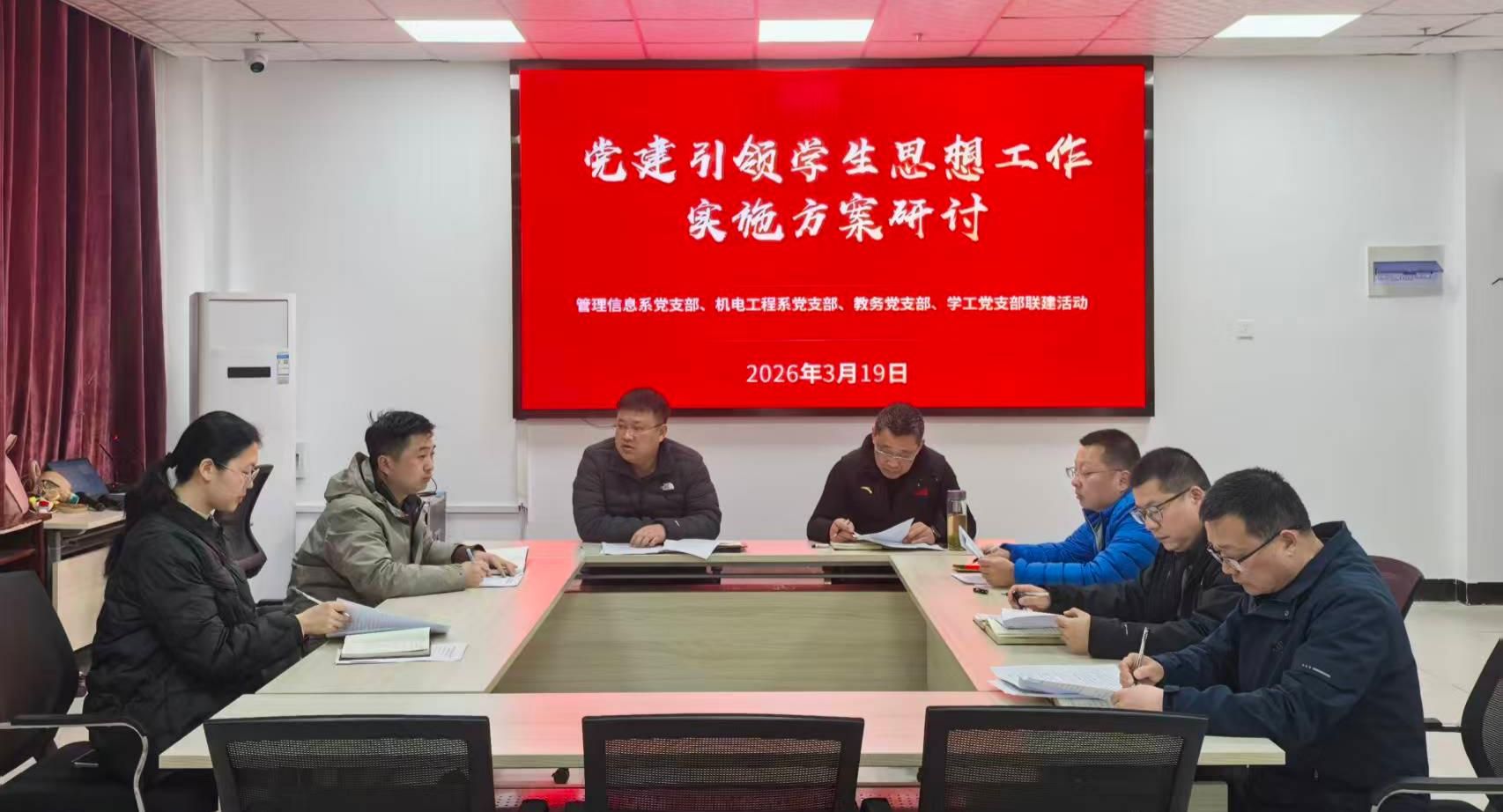3月19日,管理信息系党支部、机电工程系党支部、教务党支部、学工党支部联合开展党建联建活动,专题研讨《党建引领学生思想工作实施方案(讨论稿)》,推动党建与育人工作深度融合。