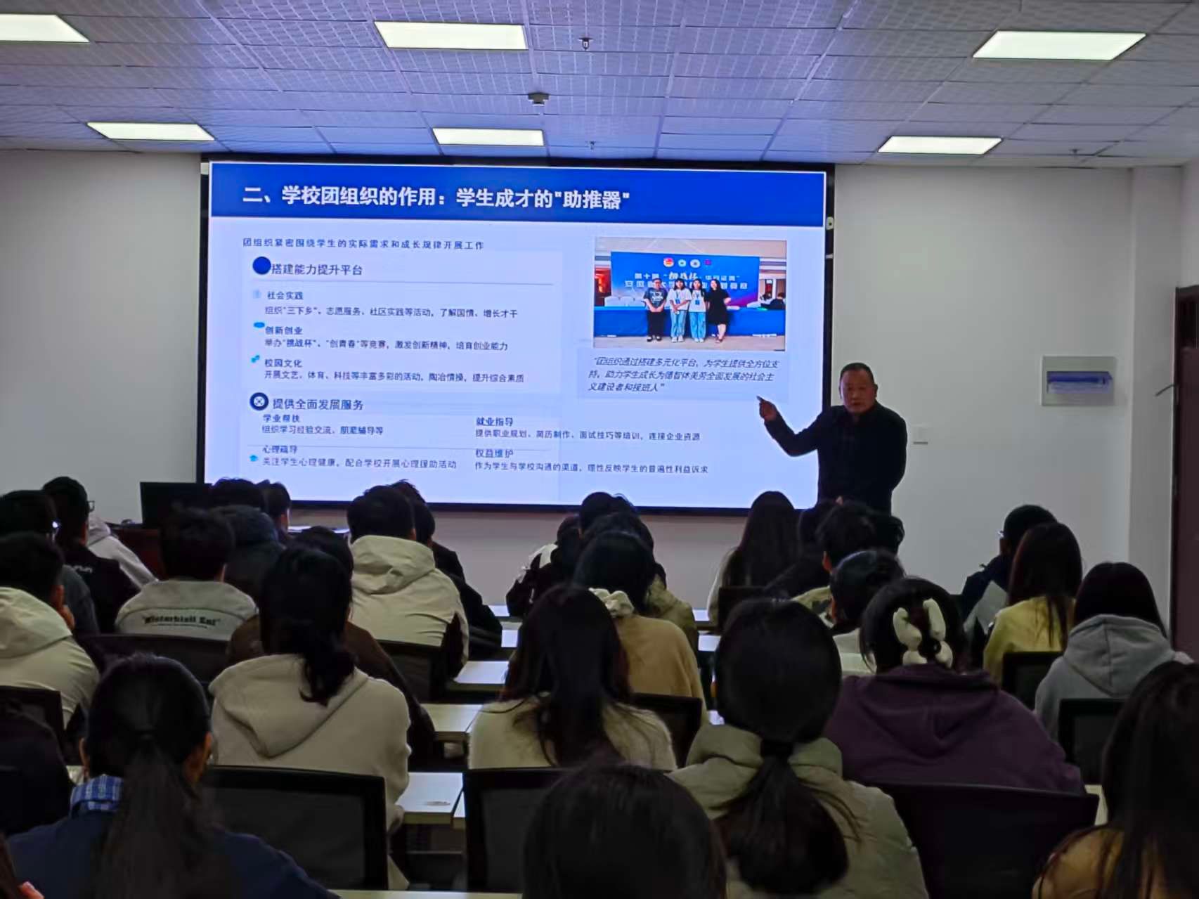 讲座系统梳理了共青团波澜壮阔的发展历程,深刻阐释了其在不同历史时期所肩负的光荣使命。紧密结合职业院校办学特色与学生成长需求,重点讲解了学校共青团组织在思想引领、组织建设、服务青年等方面的重要职能,深入剖析了职业院校团组织在培养学生职业技能与综合素养中的独特作用,进一步明确了学生会在服务同学、桥梁纽带中的定位与职责。