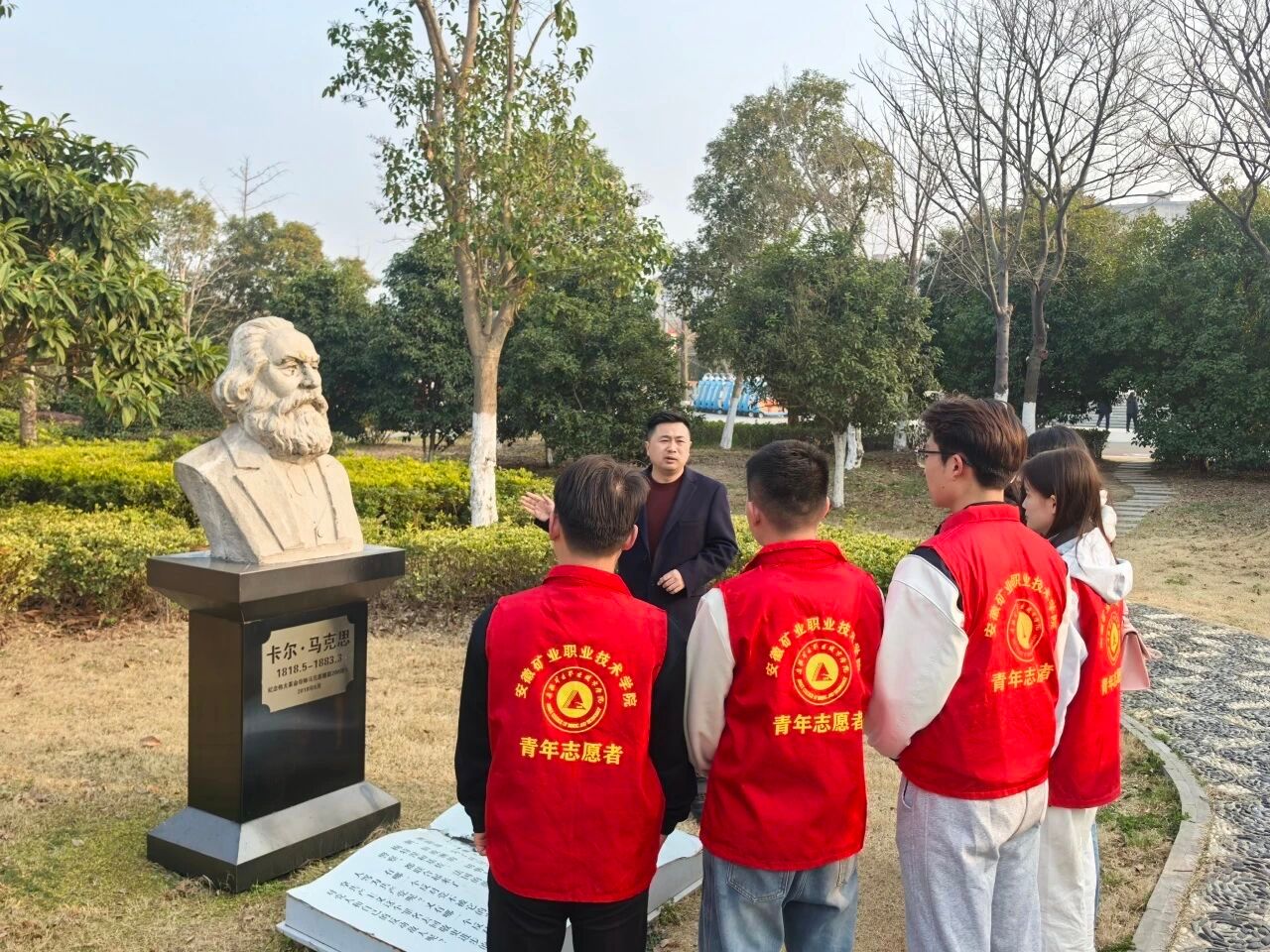 随后,同学们怀着崇敬之情来到马克思雕像前瞻仰。学院团委书记现场为大家讲述了马克思的生平事迹和马克思主义诞生的历史背景,带领学员感悟伟人思想光辉,进一步坚定理想信念。