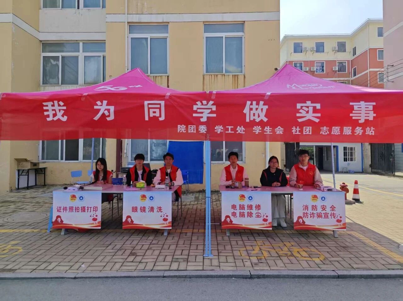活动现场气氛热烈,各项服务有序开展。摄影社团的同学充分发挥专业特长,为同学们免费拍摄并现场打印证件照,贴心服务赢得一致好评。计算机服务队的同学们发挥技术优势,耐心为同学们维修电脑、重装系统和清理灰尘,解决了不少实际难题;学生会的同学利用超声波清洗机为同学们清洗眼镜,同时结合有奖知识竞答的形式,生动讲解消防安全和防诈骗知识,同学们积极参与答题,在轻松氛围中强化了安全防范意识。