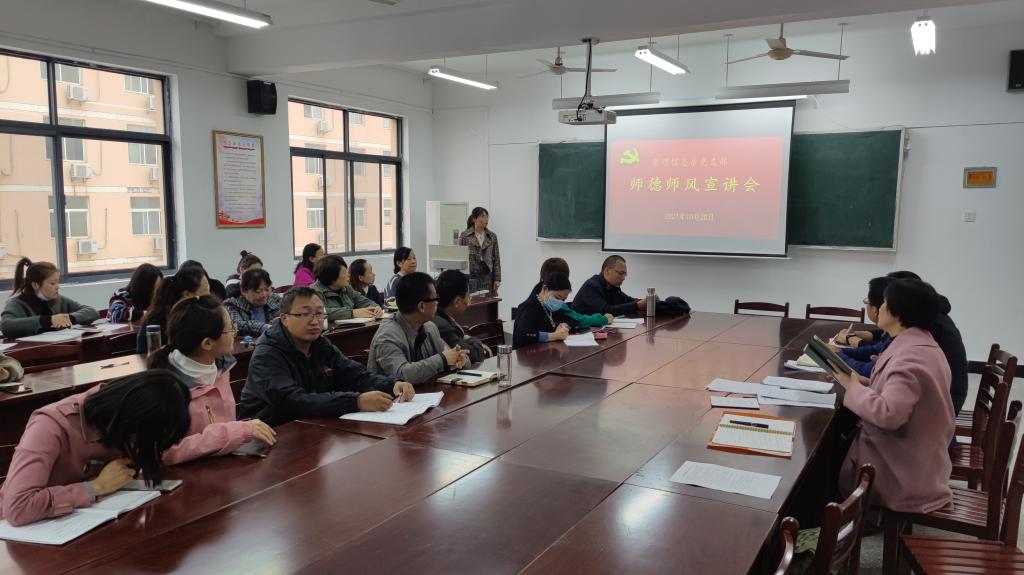 10月20日下午,管理信息系组织召开师德师风宣讲会。本次宣讲由学院师德标兵梁红侠老师主讲,该系全体教师参加了此次宣讲会。